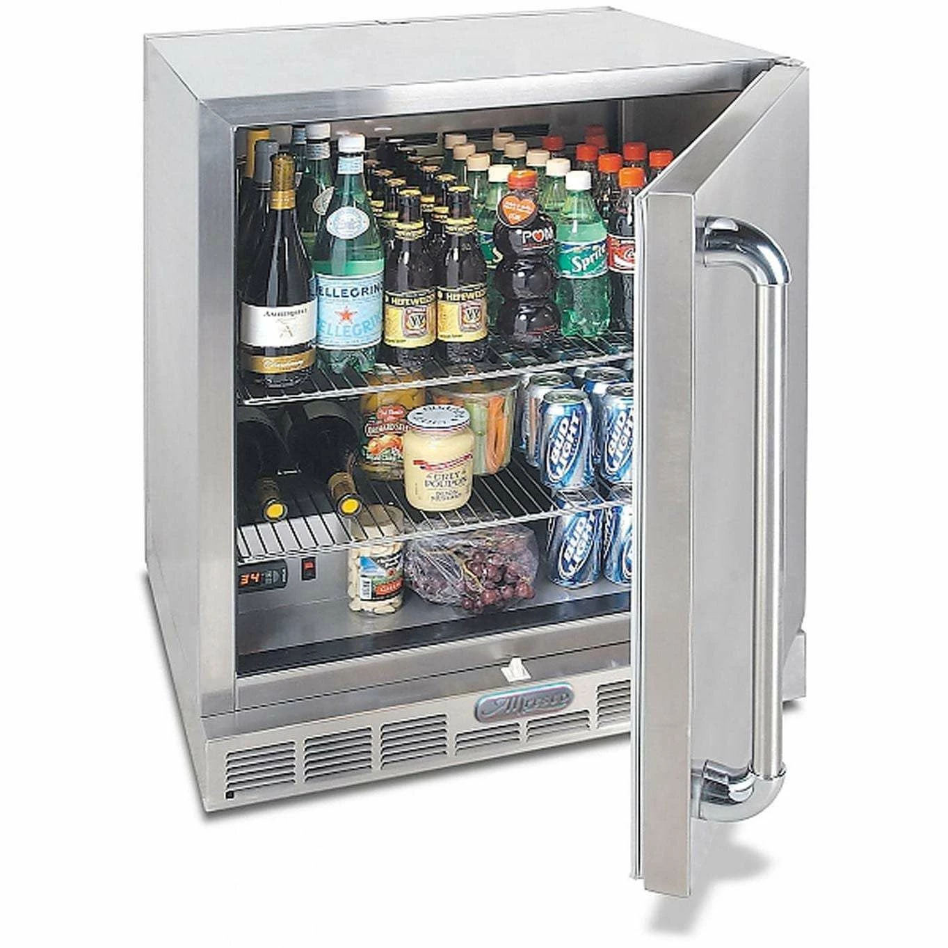This Alfresco 28-Inch Outdoor Compact Refrigerator is a true all-weather refrigerator, performing even in extreme high and low temperatures. This refrigerator features an all-welded commercial stainless steel construction, 7.25 cubic feet of interior storage space with adjustable wire shelves and high-velocity, fan-operated evaporator. The programmable digital thermostat allows you to set the temperature from 27 to 56 degrees Fahrenheit and has auto-defrost. This refrigerator is the epitome of versatility as it can convert from a refrigerator to a keggerator with the optional keg kit, and it can easily be converted back to refrigerator if you change your mind. It has two adjustable shelves and the door is reversible as well.