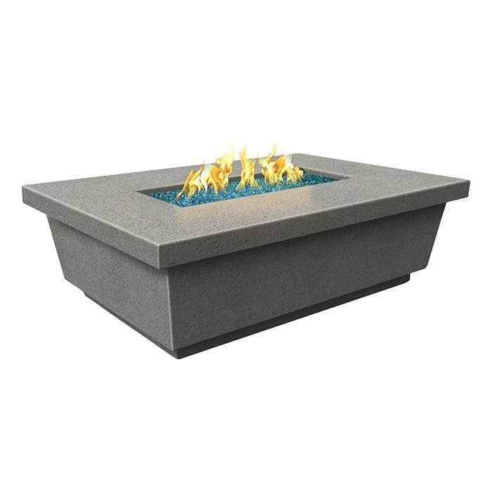 The American Fyre Designs Rectangle Contempo creates the perfect ambiance for enjoying an outdoor meal or cocktail while also keeping you warm from the evening chill. Homeowners all over the country have come to realize the allure of fire in their backyards. Fire brings warmth, glow and serenity, encouraging us to relax and unwind. An American Fyre Designs exterior fire feature will anchor your outdoor living space and turn your patio into an outdoor sanctuary inviting conversation that flows well into the night – even when there is chill in the air. Each fire feature is expertly crafted from innovative glass fiber reinforced concrete (GFRC). GFRC derives its strength from a dosage of alkali-resistant glass fiber and acrylic polymer that results in durable concrete to withstand the outdoor elements. American Fyre Designs products fit easily into most backyards, making installation fast and simple. Fire media sold separately.