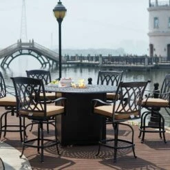 Darlee Capri 7- Piece Counter Height Round Patio Fire Pit Bar Set