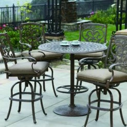 The Darlee Santa Barbara 5 Piece Cast Aluminum Patio Bar Set is an excellent addition to your outdoor seating area, upgrade your patio with this 4-person bar set, which features the elegant styling and distinctive accents unique to the Santa Barbara collection.