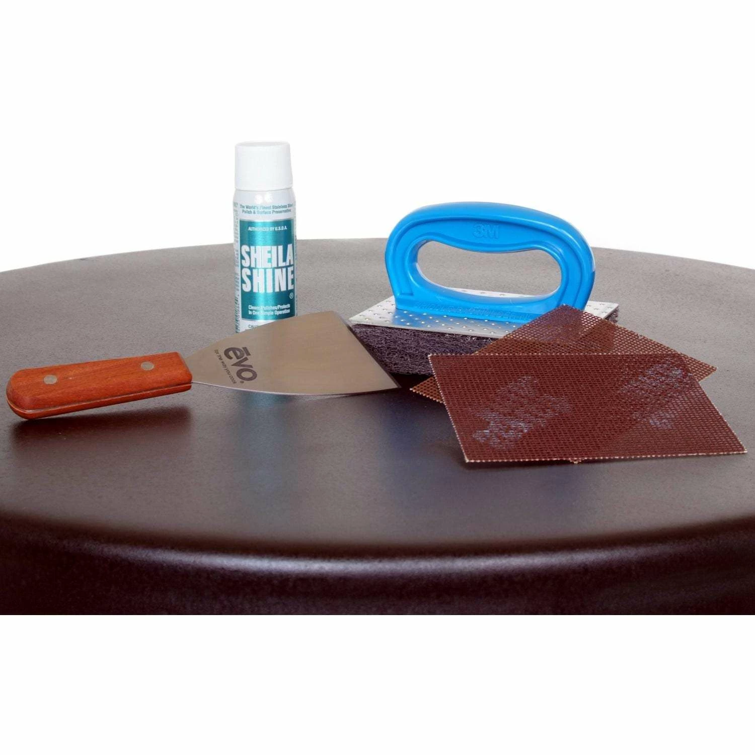 Edge-to-edge even surfaces temperatures range from 225ºF to 550ºF (121ºC to 288ºC) from the center to the outside edge without the hot spots and temperature problems prone to traditional square griddles. The burner system has a push-button electronic ignition system that ignites both burners simultaneously. A stainless steel drip pan completely surrounds the underside of the cooking surface catching all food debris. A separate spillover tray is mounted to one side of the drip pan for containing and holding pan debris. Operating on Propane LP Gas or Natural Gas, the Evo Professional 30-Inch Tabletop Flat-Top Gas Grill is an ideal grill for creating a social cooking space on your backyard patio or cooking events away from home.