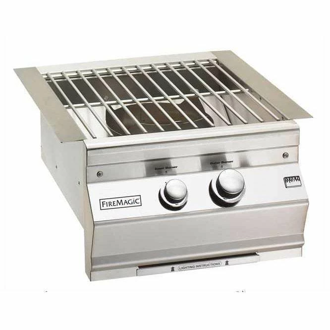 Enhance your backyard entertaining with premium Fire Magic outdoor kitchen accessories. Fire Magic Aurora Natural Gas Power Burner features a cast brass burner which produces from 3,000 to 60,000 BTUs across the stainless steel cooking grid. The large cooking area accommodates large pots for boiling or frying with ease. Two independent, natural gas burners allow for precise heat control, allowing you to fry a turkey or prepare a delicious stir-fry. An advanced hot surface ignition system offers simple and reliable lighting with the turn of the control knob. The stainless steel construction and contoured control panel is designed to perfectly complement Fire Magic Aurora series gas grills. A stainless steel lid is also included which protects the burner when not in use. This Fire Magic Aurora power burner hooks up to the Fire Magic Aurora Series Grills or can be wired individually using a separate power supply box (sold separately).