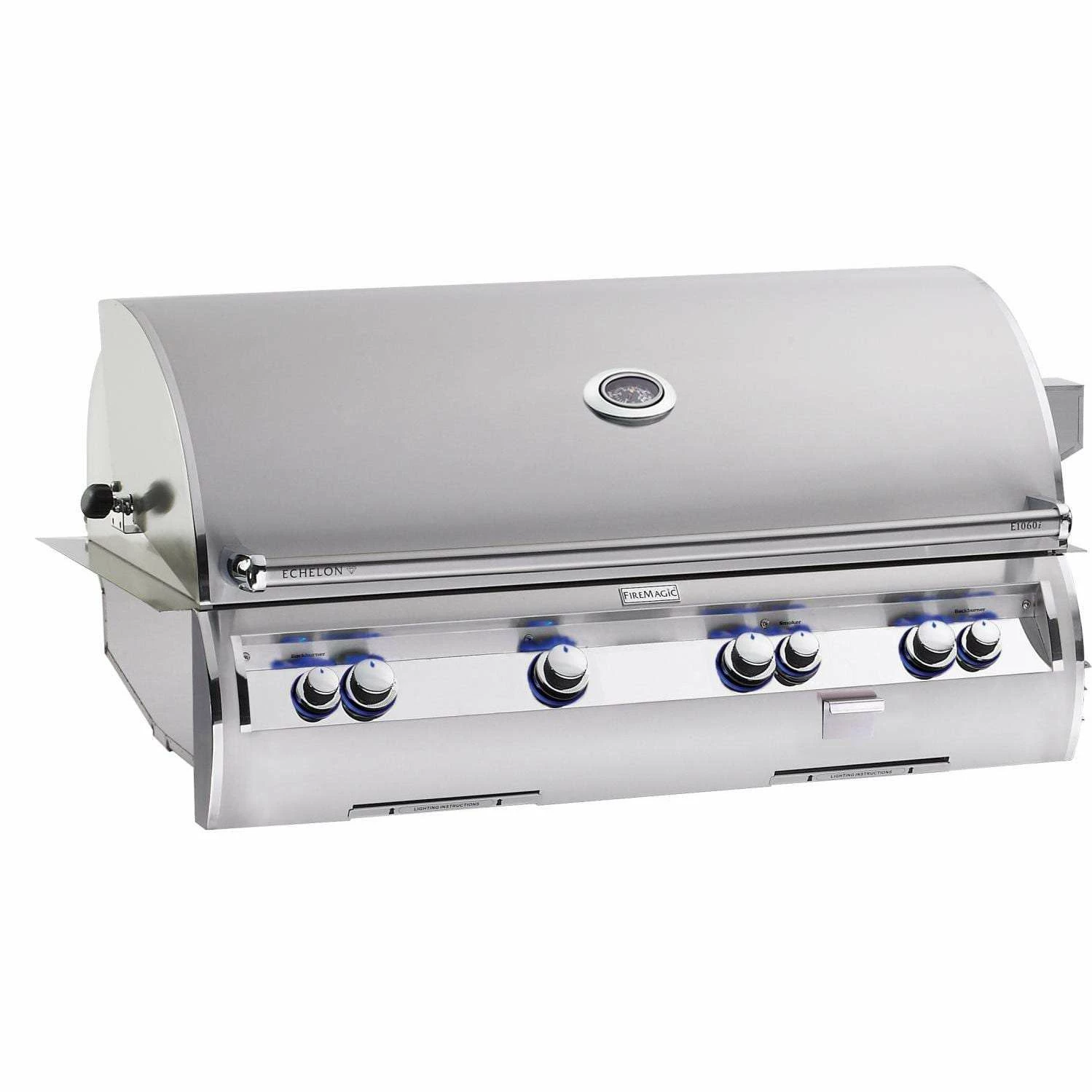 When only the best will do, Fire Magic offers the Echelon Diamond series, combining the ultimate in performance, beauty and innovation. Crafting American-made premium grills for over 75 years, Fire Magic is dedicated to providing their customers with a quality outdoor cooking experience. This Built-In Fire Magic Echelon Diamond E1060i features 304 stainless steel construction for lasting quality, and modern styling with a sleek, contoured control panel. It comes with a spring-assisted, double-walled tear-drop hood, a removable warming rack, a 12V electric hot surface ignition with flash tube back-up and a 12 inch deep firebox for complete convection cooking. The four main cast stainless steel E burners produce a total of 115,000 BTUs on the grilling surface, and the 16 gauge heavy-duty stainless steel cooking grids provide an ample 1056 square inches of grilling area. This grill also features two 11,000 BTU stainless steel Quantum rotisserie burners with rotisserie kit, which heat up quicker than other rotisserie burners and are designed to direct heat only to the food and not the rest of the grill. The grill also comes with a stainless steel wood chip smoker drawer and dedicated 3,000 BTU burner for adding a smoky flavor to your food. On the hood of the grill is a large and easy-to-read analog thermometer that is encircled in a polished, stainless steel bezel. The angled 12V halogen oven lights and back-lit knobs make cooking at night simple and fun. This grill also features rear storage for your rotisserie kit and warming rack when not in use. Cleaning the grill is easy with the included grid lifter and the disposable drip pan collection system that is designed to prevent grease pan flare-ups. The Fire Magic Echelon Diamond E1060i requires a 110V power source to work properly and a wiring harness protects wiring from the heat of the grill. Each Echelon Diamond grill comes with a getting started DVD to make using your grill easy and fun.