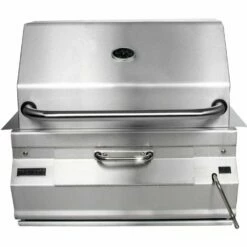 The Fire Magic Legacy Meat Smoker Charcoal Grill features 432 square inch cooking surface, all stainless steel construction, and a heavy-duty stainless smoker hood with precise analog thermometer. The smoker hood features adjustable air shutters for easy temperature control. The adjustable cooking surface and easy-access charcoal drawer make adding charcoal and smoker chips a breeze. This grill includes a charcoal shield for indirect cooking. Allow 10-12 inches from the back of the grill to the backsplash/wall for lid clearance when lid is open.