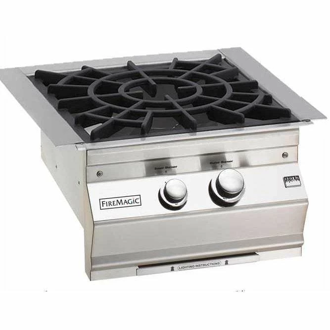 This Fire Magic Propane Gas Built-In Power Burner features a cast brass burner which can produce 3,000 BTUs all the way up to 60,000 BTUs across the porcelain cast iron grid, and it easily accommodates large pots and pans. The two independent burners allow for precise heat control, so you can fry a turkey or reduce a sauce. The contoured face, and polished trim look great in any setting and complement the features found in all Fire Magic Grills. Also includes stainless steel lid.