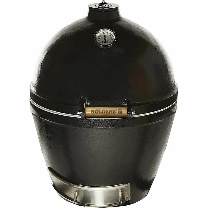 For 4,000 years, mankind used clay vessels to cook food. But that is all in the past. Goldens’ Foundry Cast Iron Cooker has left clay in the dust. Welcome to the future. Welcome to American-Made. Welcome to rust-resistant, all-weather durability. Welcome to the two-minute sear and the overnight low-and-slow. Welcome to the last grill you’ll ever own. Clay has had its day, welcome to the Iron Age! The Goldens’ Cast Iron Cooker is built on two beliefs: First, as a 5th generation family business, products should be built to last, just like our company; and second, while life may be fragile, your grill doesn’t have to be. For the past 137 years, Goldens’ Foundry & Machine Company has cast the parts that have helped build America. The Goldens 20.5-Inch Kamado Cooker is a stand-alone model, intended to be installed in your own outdoor kitchen setup. It’s constructed of high-quality, durable American made 7/8″ cast iron with a full 20.5″ cooking area that will last for generations! Beyond durability, our cast iron surfaces offer amazing “flavorability” too! All Goldens’ Cast Iron Kamado Cookers are finished with an all-weather, high-temperature powder coat finish to prevent rusting and weathering effects. This model includes cast iron grates. The Goldens’ Cast Iron Grill will bring your family together for generations to come.