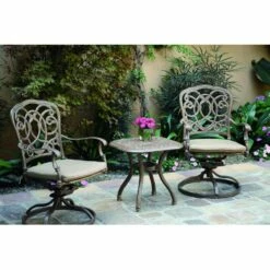 Darlee Florence 3 Piece Cast Aluminum Patio Bistro Set With Swivel Rockers – Antique Bronze