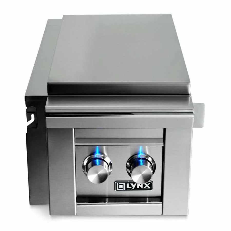Extraordinary quality and design innovation can be yours with Lynx premium outdoor kitchen accessories. The Lynx Professional Cart Mount Double Side Burner features two 15,000 BTU brass burners capable of delivering intense high heat or a low simmer for the perfect cooking conditions every time. The burners and burner basin are sealed making them exceptionally easy to clean and heavy-duty welded construction eliminates gaps where grease and moisture can collect. Reliable lighting with the Lynx Glow coil ignition. This item is designed to plug in to a Lynx Grill in order to provide power for lights and glow coil ignition. Bring the power and performance of Lynx innovation to your outdoor kitchen with the LCB2-3 Side Burner. This side burner includes an adapter kit for use on 27 and 36-inch grills.