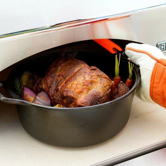 - Specially formulated concrete refractory interior and cooking surface retains and evenly distributes heat