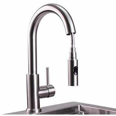 Extraordinary quality and design innovation can be yours with Lynx premium outdoor kitchen accessories. The Lynx Professional Outdoor Rated Single-Handle Gooseneck Faucet is constructed of solid stainless steel and features single level handle for simple operation. The stylish, high-arch design accommodates larger pots and pans for easy cleaning. The faucet has a washerless design, and can be connected to hot and cold water or simply cold only. The LFK faucet is designed for Lynx LSK24 and LSK30 sinks, but also matches well with granite, marble, quartz or concrete countertops.
