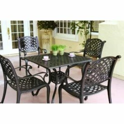 Darlee Nassau 5 Piece Cast Aluminum Patio Dining Set With Square Table