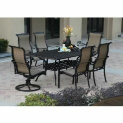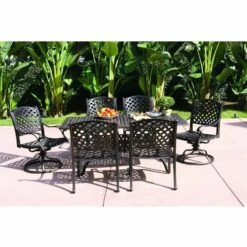 Darlee Nassau 7 Piece Cast Aluminum Patio Dining Set With 2 Swivel Rockers