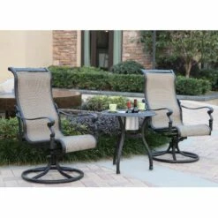 Darlee Santa Anita 3 Piece Cast Aluminum Patio Conversation Seating Set With Swivel Rockers