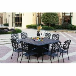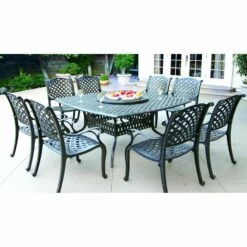 Darlee Nassau 9 Piece Cast Aluminum Patio Dining Set With Lazy Susan