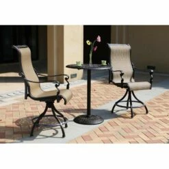 Darlee Monterey 3 Piece Sling Patio Bistro Set – End Table With Ice Bucket Insert