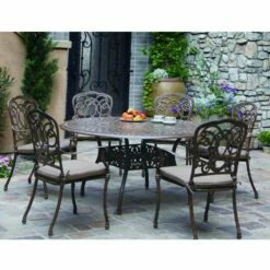 Darlee Florence 7 Piece Cast Aluminum Patio Dining Set With Round Table – Antique Bronze