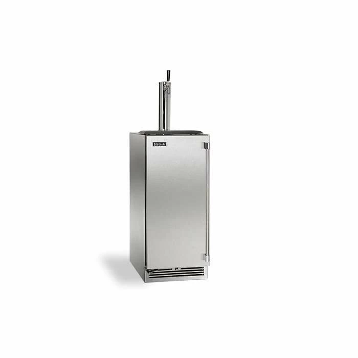 We proudly offer Perlick commercial-quality outdoor refrigeration products. Featuring stainless steel interiors, high-performance refrigeration systems, and impeccable craftsmanship, Perlick provides quality refrigeration for your outdoor kitchen. Transform your outdoor space into the ultimate entertaining area with the Perlick 15-Inch Beer Dispenser. It combines Perlick’s 50-plus years of commercial beer dispensing expertise with the thoughtful, compact size of a 15″ cabinet. With the capacity to hold one 1/6th barrel, you can make the most of your outdoor area even when space is limited. Not a beer drinker? No problem- any Perlick home beer dispenser can easily be converted to a cold coffee dispenser with accessory iced coffee dispensing kit. Designed by veteran Perlick engineers, Perlick’s Flow Control Beer faucet is constructed of food-grade 304 stainless steel – an industry exclusive. Because no two craft beers pour alike, the lever on the side of the faucet can be adjusted to accommodate the carbonation of any variety of beer. Taper the lever downwards to properly pour highly carbonated beers like Hefeweizens, or adjust upwards to pour standard lagers. The Signature Series features Perlick’s exclusive RAPIDcool forced-air refrigeration system, providing industry-leading cooling performance. Insulated walls also help keep cold air in the refrigerator. The unmatched cooling performance also keeps your products cold no matter what the forecast calls for. Doors are available in left or right hinged configuration.