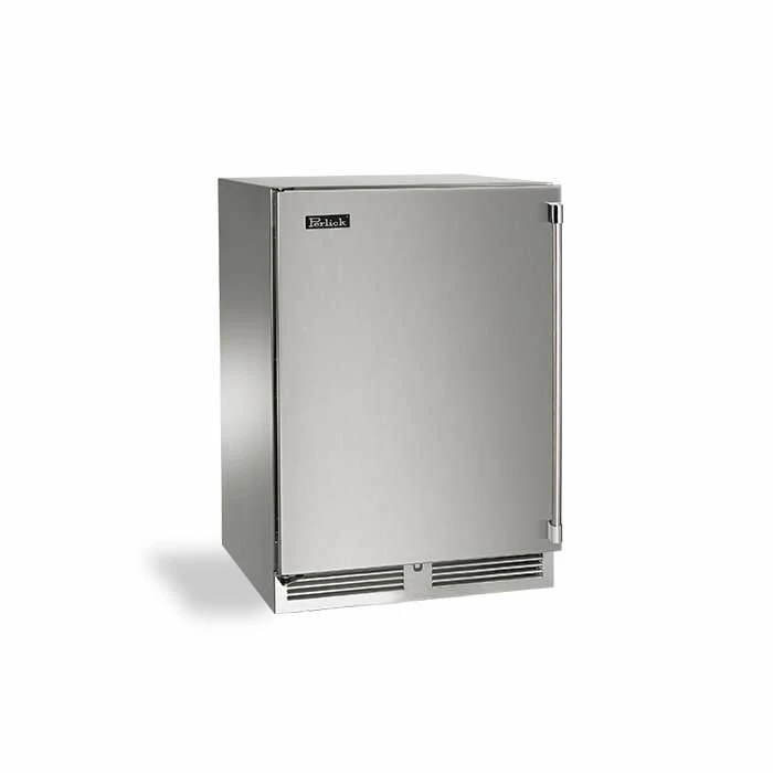 We proudly offer Perlick commercial-quality outdoor refrigeration products. Featuring stainless steel interiors, high-performance refrigeration systems, and impeccable craftsmanship, Perlick provides quality refrigerators for your outdoor kitchen. Designed to complement any outdoor kitchen, the Perlick 24-Inch Freezer keeps goods ice cold – even on the hottest summer days. Store ice, frost glasses, and keep frozen treats in your outdoor kitchen without worrying about the outdoor temperatures. The Signature Series features Perlick’s exclusive RAPIDcool forced-air refrigeration system, providing industry-leading cooling performance. Insulated walls also help keep cold air in the refrigerator. The unmatched cooling performance also keeps your products cold no matter what the forecast calls for. All Perlick under-counter refrigerator shelves are full extension, pulling completely out of the cabinet for easy stocking and retrieving of product. Shelving is black vinyl-dipped to provide additional vibration protection, and shelving glides smoothly in and out of the cabinet on stainless steel ball-bearing glides. Perlick Signature Series under-counter refrigeration is brightly illuminated with adjustable LED lighting. A quick flip of a switch instantly changes from crisp white lighting to a cascade of soft, cool blue illumination. Available in left or right hinged configuration.