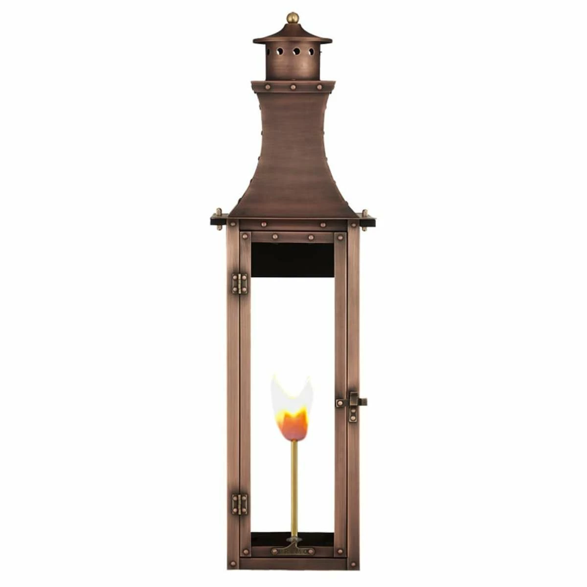 Add a little Southern charm and character to any outdoor area with lighting from Primo Lanterns. Hand made from pure 22 gauge copper, the Primo Bishop 30-Inch Lantern is antique-finished and clear-coated for a breathtaking appearance. This lantern features traditional lines with contemporary designs. The Bishop embodies a transitional fixture that compliments classic as well as contemporary styled homes. This fixture’s height and narrow width make it ideal for sleek architectural designs. Choose natural gas or electric power. Available with a wide variety of mounts and accessories, including A variety of brackets and mounts, wind guards, finials, and more. Primo’s gas lantern valves are manually adjustable and burn up to 1600 BTU.