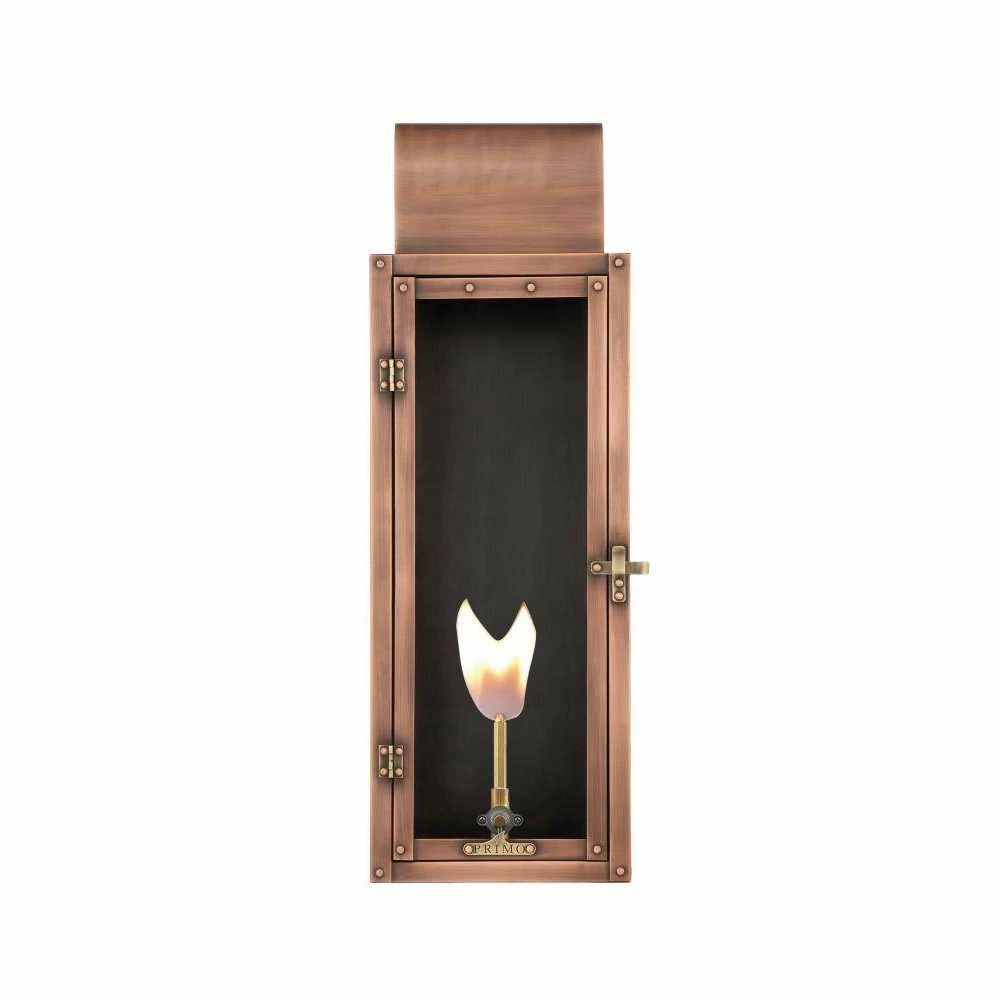 Add a little Southern charm and character to any outdoor area with lighting from Primo Lanterns. Hand made from pure 22 gauge copper, the Primo Lafayette 21-Inch Lantern is antique-finished and clear-coated for a breathtaking appearance. The warm glow of this lantern will offer relaxing illumination wherever it is located. Choose natural gas or electric power. Available with a wide variety of mounts and accessories, including: A variety of brackets and mounts, wind guards, finials, and more. Primo’s gas lantern valves are manually adjustable and burn up to 1600 BTU.