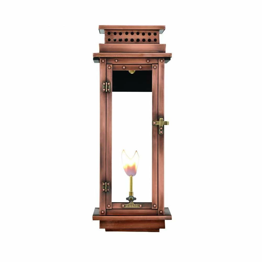 Add a little Southern charm and character to any outdoor area with lighting from Primo Lanterns. Hand made from pure 22 gauge copper, the Primo Nouveau 22-Inch Lantern is antique-finished and clear-coated for a breathtaking appearance. The warm glow of this lantern will offer relaxing illumination wherever it is located. Choose natural gas or electric power. Available with a wide variety of mounts and accessories, including: A variety of brackets and mounts, wind guards, finials, and more. Primo’s gas lantern valves are manually adjustable and burn up to 1600 BTU.