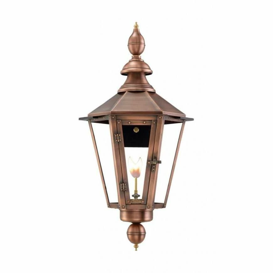 Add a little Southern charm and character to any outdoor area with lighting from Primo Lanterns. Hand made from pure 22 gauge copper, the Primo Vicksburg 30.75-Inch Lantern is antique-finished and clear-coated for a breathtaking appearance. The warm glow of this lantern will offer relaxing illumination wherever it is located. Choose natural gas or electric power. Available with a wide variety of mounts and accessories, including: A variety of brackets and mounts, wind guards, finials, and more. Primo’s gas lantern valves are manually adjustable and burn up to 1600 BTU.