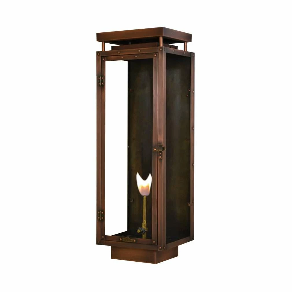 Add a little Southern charm and character to any outdoor area with lighting from Primo Lanterns. Hand made from pure 22 gauge copper, the Primo Yorkshire 32-Inch Lantern is antique-finished and clear-coated for a breathtaking appearance. This lantern embraces the contemporary look of modern homes with understated elegance. This flush mount fixture goes equally well on an entrance or as an accent piece on any other location. Choose natural gas or electric power. Available with a wide variety of mounts and accessories, including: A variety of brackets and mounts, wind guards, finials, and more. Primo’s gas lantern valves are manually adjustable and burn up to 1600 BTU.