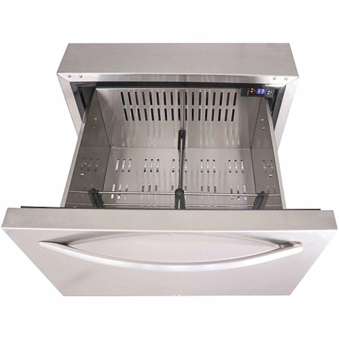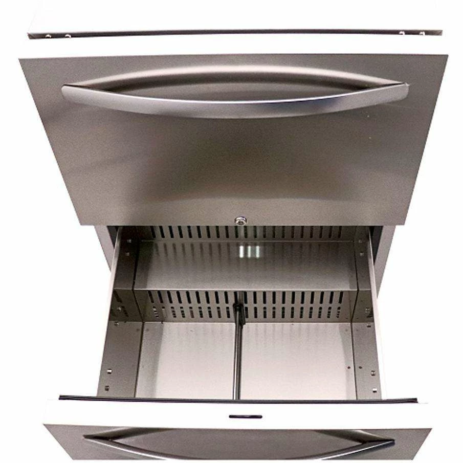 Renaissance Cooking Systems introduces an essential tool for keeping any outdoor kitchen stocked with cold drinks and fresh food. The RCS 24-Inch Dual Drawer Refrigerator features two soft close drawers for ample cold storage space. It also features a digital LED control panel for precise temperature control and locking drawers with key to secure your food or drinks. The interior comes equipped with a LED light for easy visibility. Maintenance is simplified, with the added luxury of automatic defrost.