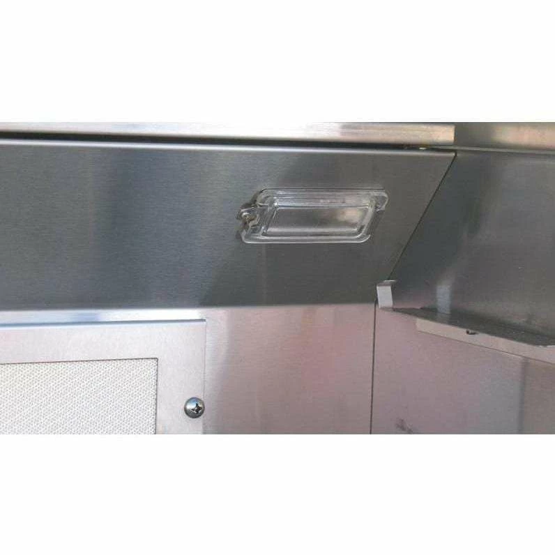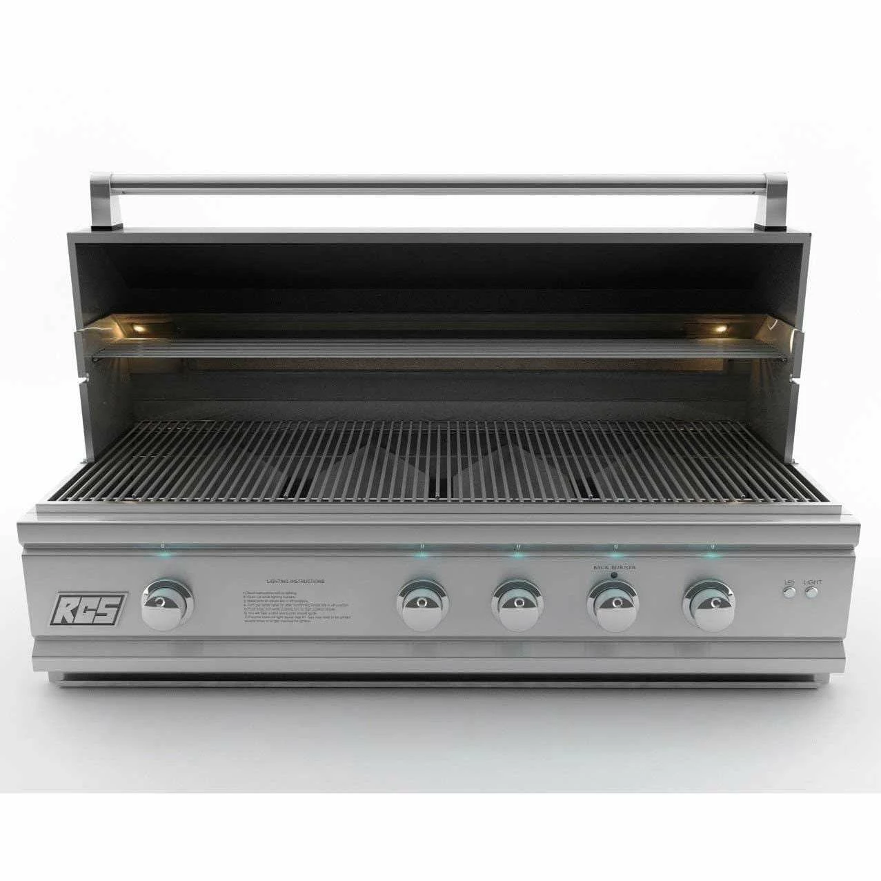 The RCS Cutlass Pro 42-Inch Gas Grill features four (4) cast stainless steel burners for 60,000 BTUs, plus a 20 inch stainless / ceramic rear rotisserie burner for 12,500 making a combined total of 72,500 BTUs of cooking power. This grill is constructed of 304 stainless steel, making it the last grill you will ever need! This RCS grill also includes grilling zone separators that isolate specific cooking conditions to the specified grilling section. The stainless steel flame tamers prevent flare-ups for safer cooking, and heavy duty stainless steel cooking grids distribute even heat for ideal grilling conditions. Cook delicious rotisserie meals in your own backyard with the included rotisserie kit. The Sure-Strike electronic ignition system ensures an easy and reliable start-up every time. Cool blue electronic LED knob lights and interior halogen lighting provide visibility for cooking in the evening. The heat indicator installed in the hood helps you monitor cooking temperatures during your grilling experience. With a 840 square inch primary cooking area, and a 336 square inch secondary cooking area, the RCS RON42A natural gas BBQ grill gives you a total of 1176 square inches of grilling space. The outdoor kitchen counter depth should be at least 23 inches in order to open the grill hood.