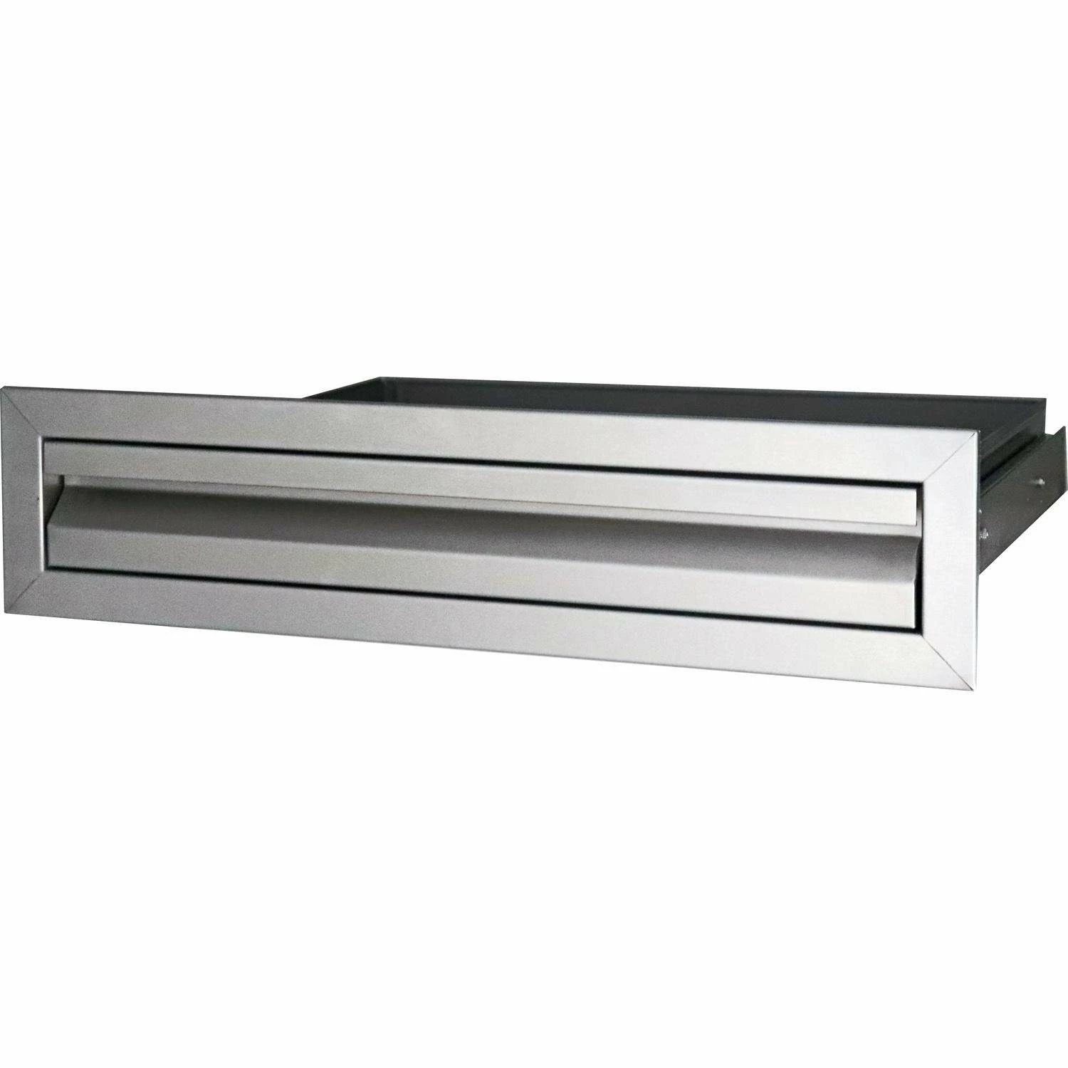 The RCS Valiant 25-Inch Accessory Access Drawer features 304 stainless steel contstruction for durability against the outdoor elements. The full length, soft close tracks and the double-lined drawer panel give the drawer sturdiness and stability. The recessed handle give the drawer a sleek look that complements any outdoor kitchen or BBQ island. The narrow design is perfect for storing tools or utensils without too much clutter.