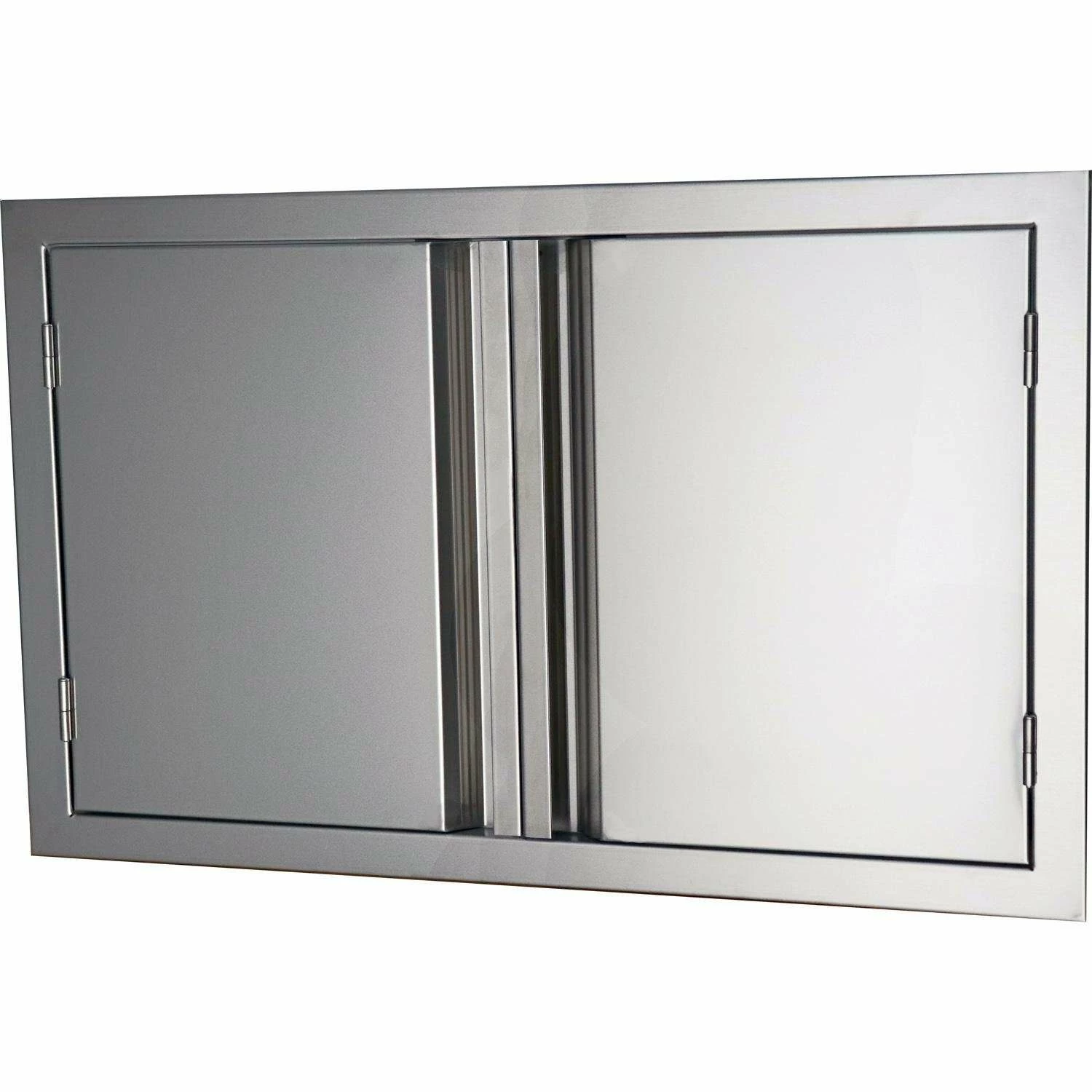 The RCS Valiant 45-Inch Double Access Door features 304 stainless steel construction for durability against the outdoor elements. These doors are double-lined for sturdiness and feature recessed handles, which gives them a sleek look to complement any outdoor kitchen. They can also open a full 180 degrees, so you get unobstructed access to the inside of your outdoor kitchen or BBQ island.