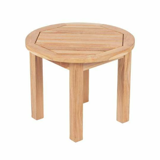 The Royal Teak Collection is kiln dried and fully machine-made with mortise and tenon joints for a tight fit. Only stainless steel hardware is used, and the high content of oil in our Teak, protects the furniture from the outdoor elements, no matter what climate you might live in, and will ensure you a lifetime of enjoyment with your furniture. The Royal Teak Collection Miami Round Side Table is in the Deep seating group that offers comfort and style. It is a side table with stainless steel hardware. If left in the sun, the Teak will turn to a graceful silver appearance that looks stunning. However, you can at any time bring it back to natural by using a Teak-cleanser or by power washing it. If you choose to power wash, please use less than 2000 psi.