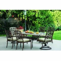 Darlee Santa Barbara 7 Piece Cast Aluminum Patio Dining Set With Rectangular Table – Antique Bronze